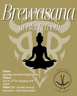 Event: Brewasana at Blacktooth Brewing Date: See Facebook for Next Date Time: 10:30 am Place: Backtooth Brewing - Downtown Cheyenne Cost: $30 Purchase tickets in advance at Black Tooth or purchase the morning of the event.